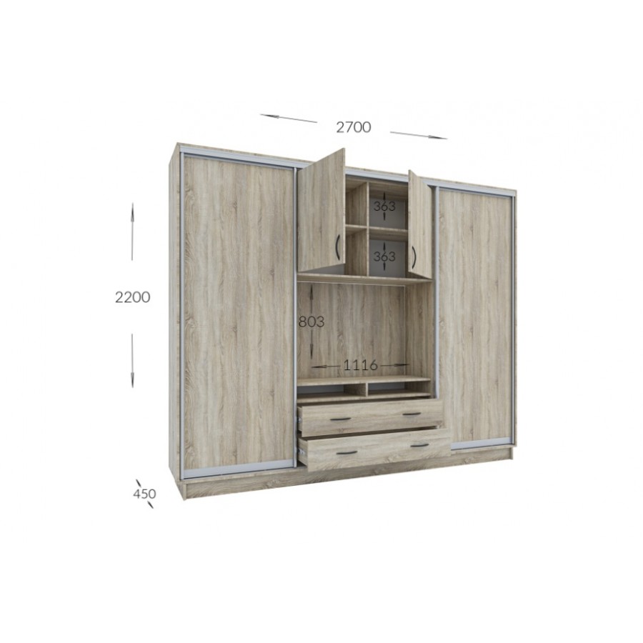 Розмір: 2700х450х2200 (є можливість замовлення виробу з висотою 2400мм)