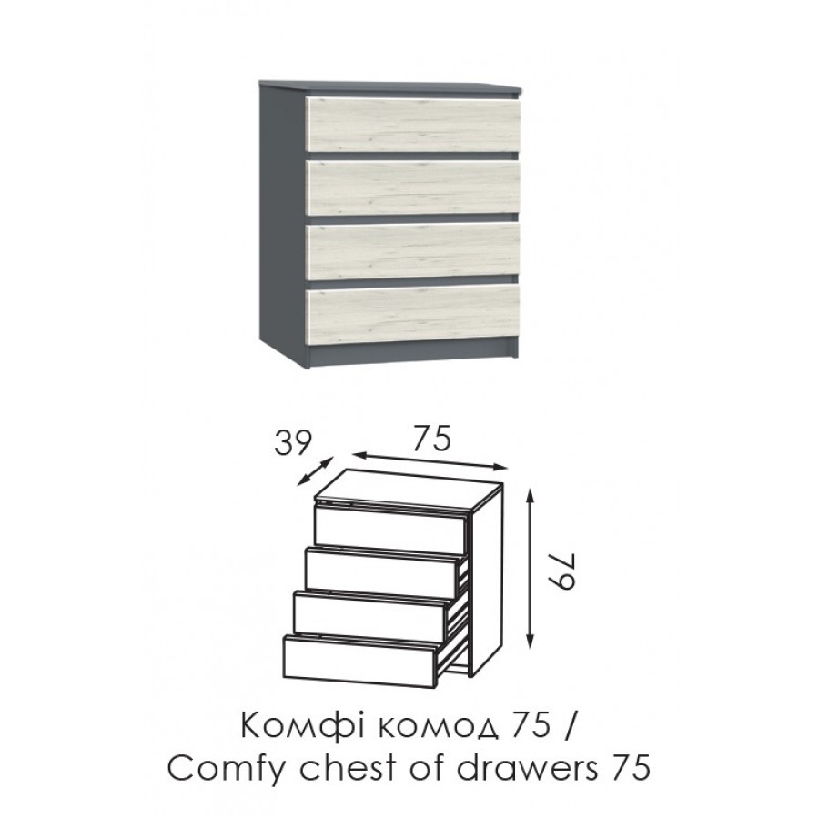 Колір каркасу/Фасад ДСП: дуб кастелло коньячний + дуб крафт білий, сірий шифер + дуб крафт білий, дуб крафт білий + дуб крафт білий