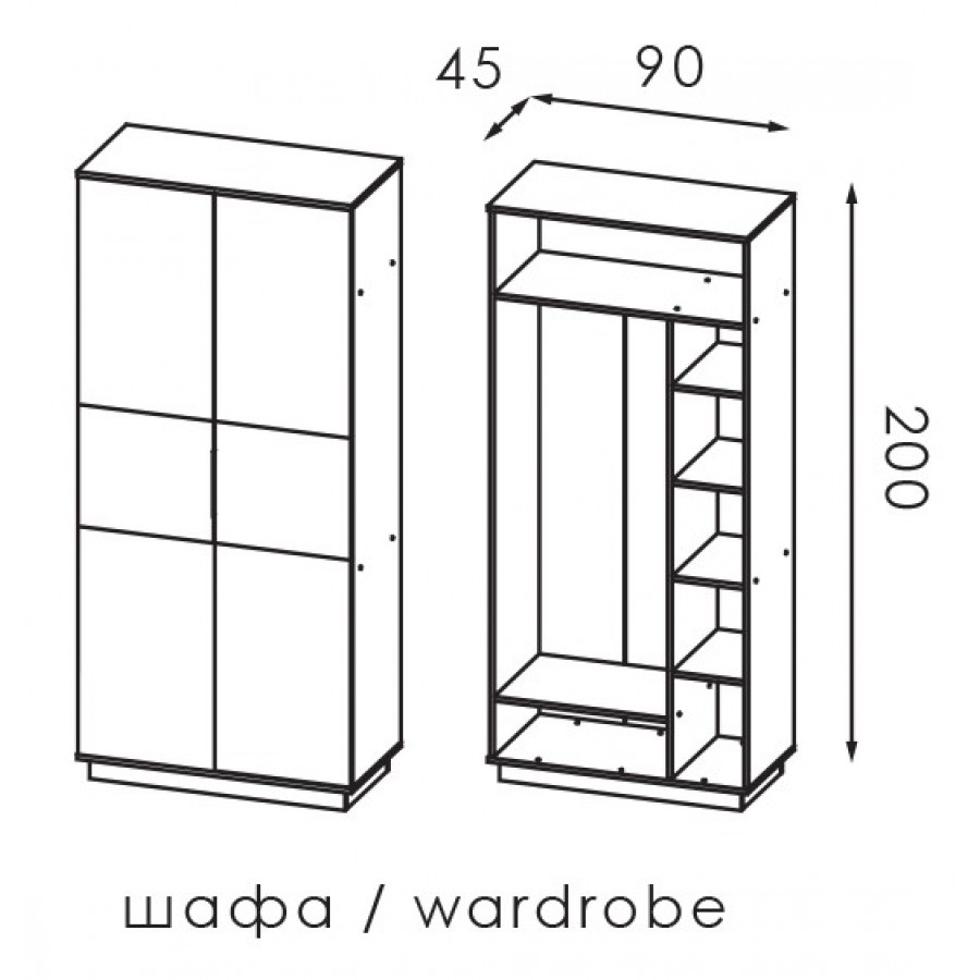 Шафа: довжина - 900 глибина - 450 висота - 2000