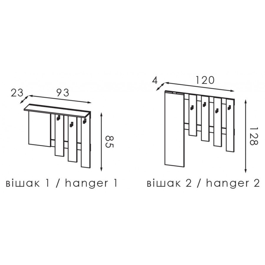 Вішалка 1: довжина - 930 глибина - 230 висота - 850