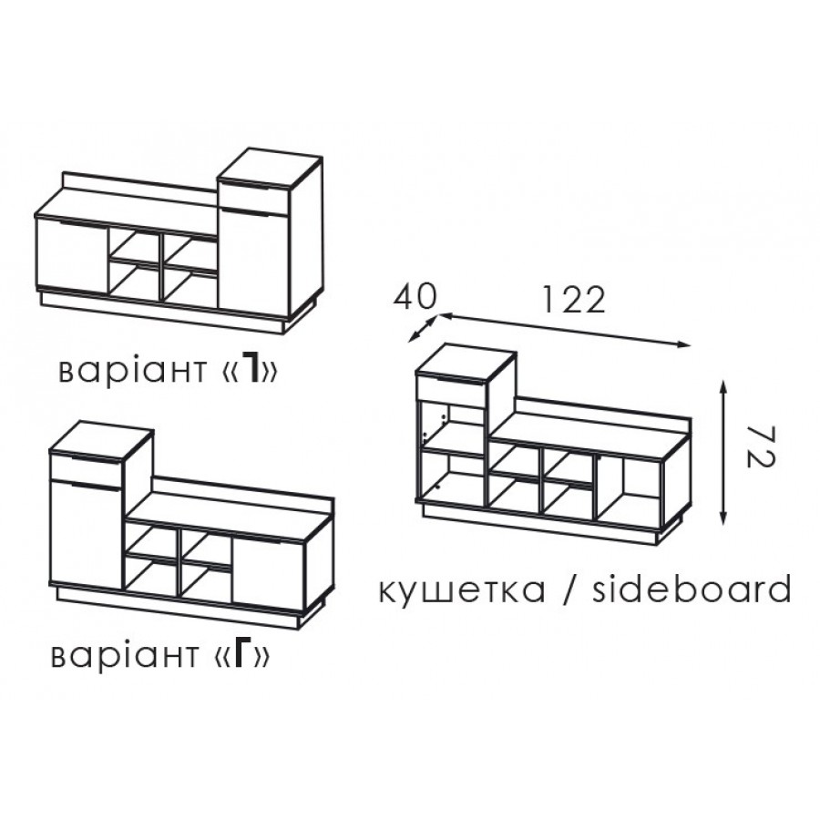 Комод: довжина - 1200 глибина - 400 висота - 970