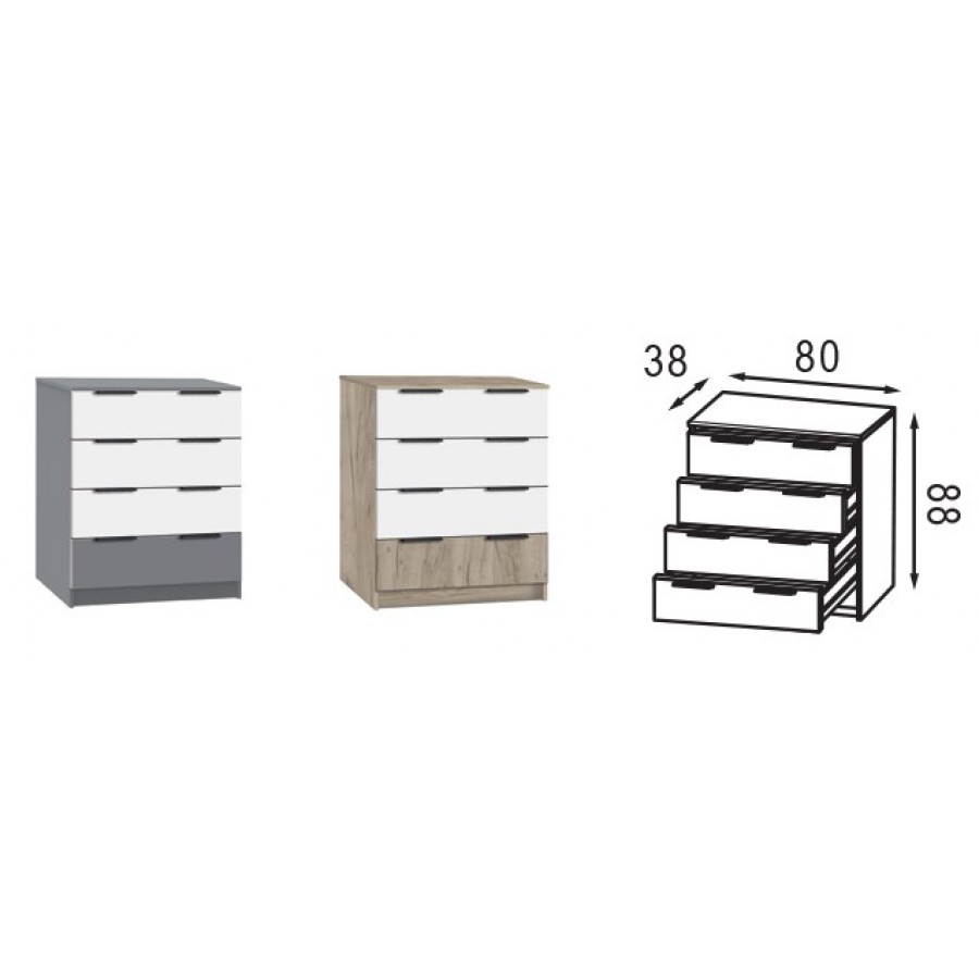 Колір каркасу/Фасад ДСП: білий, сірий шифер, дуб крафт сірий